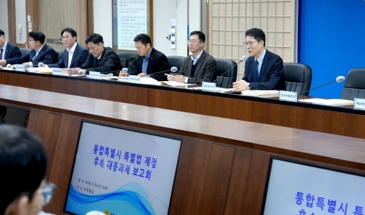 특히 인공지능(AI)·에너지·문화수도 조성 등 통합특별시의 핵심 비전 실현을 위한 법령·특별시 조례 정비, 재정 확보, 권한 이양, 대응계획 수립 등 제도 기반 구축 방안을 중점 논의했다.