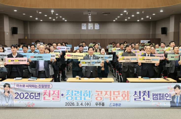 군 종합민원실 관계자는 “친절과 청렴은 제도 이전에 직원들의 마음가짐에서 시작된다”며 “조직문화 개선을 통해 그 변화가 민원 현장에서 군민에게 전달될 수 있도록 노력하겠다”고 말했다.