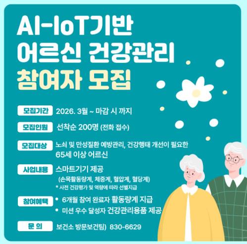 신규 모집 인원은 200명 내외로 3월 중 선착순 접수하며, 4월 기초 건강검사를 시작으로 본격적인 서비스를 운영할 예정이다.