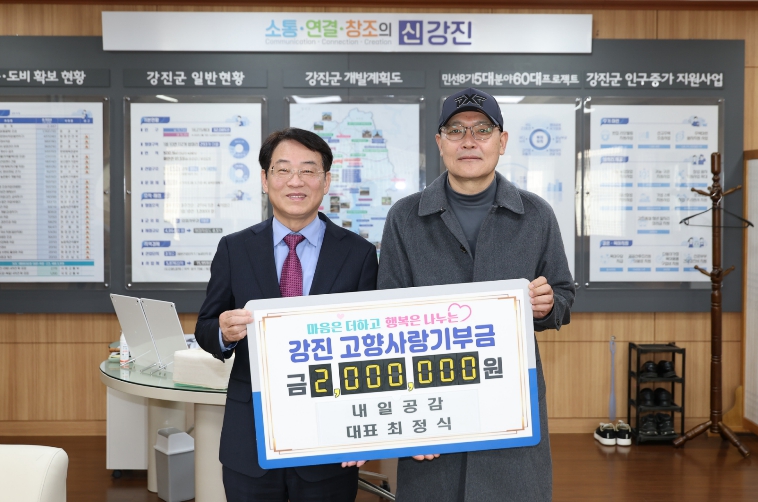 강진군은 지난 4일 최정식 대표가 강진 고향사랑기부금 2백만 원을 기탁했다고 밝혔다.