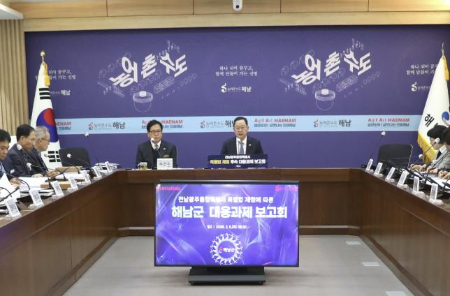 군 관계자는“전남광주통합특별시 출범은 지역 발전의 새로운 전환점이 될 것”이라며“61개 대응과제를 체계적으로 추진해 해남이 통합특별시의 새로운 경제 중심지로 도약할 수 있도록 행정 역량을 집중하겠다”고 밝혔다.