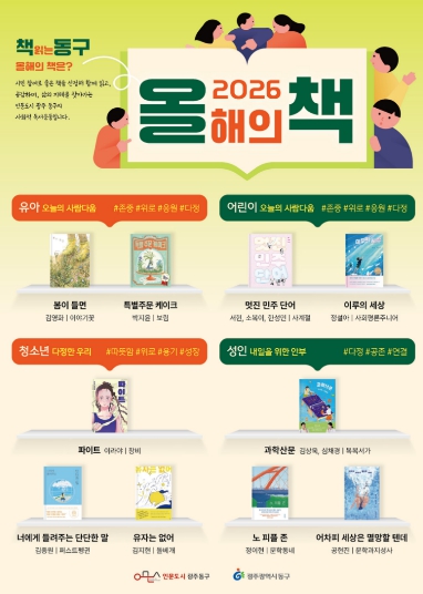 동구 관계자는 “2026년 ‘올해의 책’은 일상 속에서 ‘사람답게 살아가는 가치’를 고민하고 성찰할 수 있는 도서들로 엄선했다”며 “앞으로 선정 도서를 중심으로 다양한 독서 프로그램과 참여형 활동을 펼쳐 시민 모두가 함께하는 독서문화로 확산해 나가겠다”고 말했다.