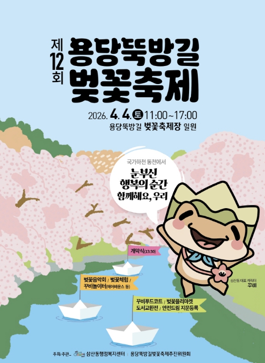 최홍미 삼산동장은 “올해 12회를 맞은 용당뚝방길 벚꽃축제는 지난 2012년부터 시작된 삼산동의 대표적인 지역 축제”라며 “지역 주민들은 아름다운 벚꽃이 피는 국가하천과 함께하는 삶에 자부심을 느끼고, 방문객들은 눈부신 벚꽃의 향연 아래 행복한 추억을 만들 수 있도록 알찬 축제를 선보이겠다”고 말했다.