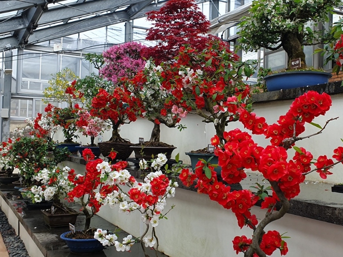 이번 전시는 3월 말부터 4월 초까지 진행되며, 장미과 낙엽관목인 명자나무 분재 150여 점이 유리온실과 관람로 주변 전시장에 선보인다.
