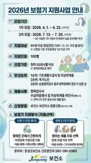 군은 1년 이상 장성군에 주민등록을 두고 거주한 65세 이상 주민이 난청으로 확인된 경우, 보청기 구입을 지원해 왔다. 자부담 20만 원만 내면 군과 협약을 맺은 업체의 보청기를 받을 수 있었다. 나머지 비용은 장성군이 30만 원, 업체 측이 150만 원을 지원한다.