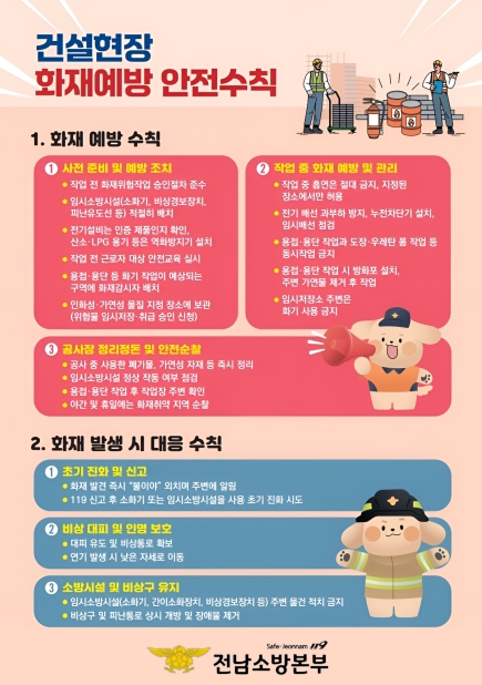 건설현장은 용접ㆍ절단 등 화기 취급 작업과 가연성 자재 사용이 많아 작은 부주의도 대형 화재로 이어질 가능성이 높다. 이에 따라 작업 단계별로 안전수칙을 철저히 준수하는 것이 무엇보다 중요하다.