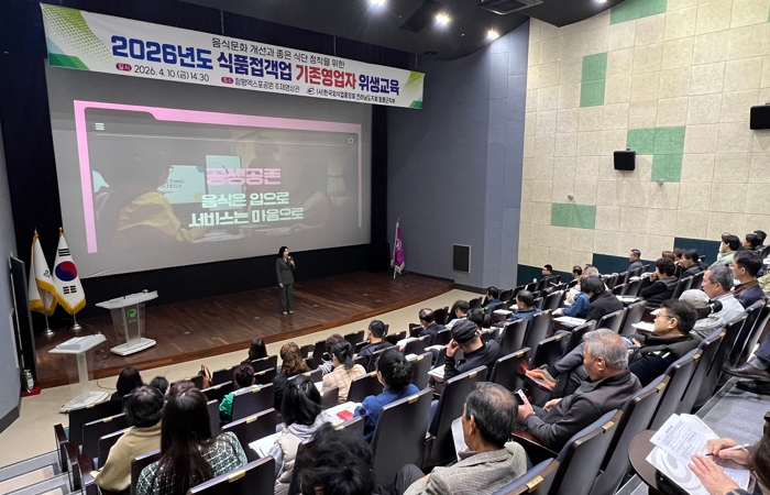 함평군은 “지난 10일 함평엑스포공원 주제영상관에서 (사)한국외식업중앙회 함평군지부 주관으로 ‘2026년 일반음식점 기존 영업자 집합 위생교육’을 실시했다”고 12일 밝혔다.