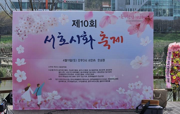 광주 서구 운천저수지 일원에서 지역 문학인과 시민이 함께하는 ‘제10회 서호시화축제 및 서호문학회 사무실 개소식’이 2026년 4월 11일 오후 3시, 호심정에서 성황리에 개최됐다.