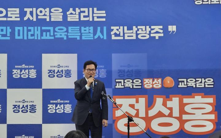 정성홍 후보는 “정의롭고 신뢰받는 광주교육을 만들겠다”며 핵심 공약을 제시했다.