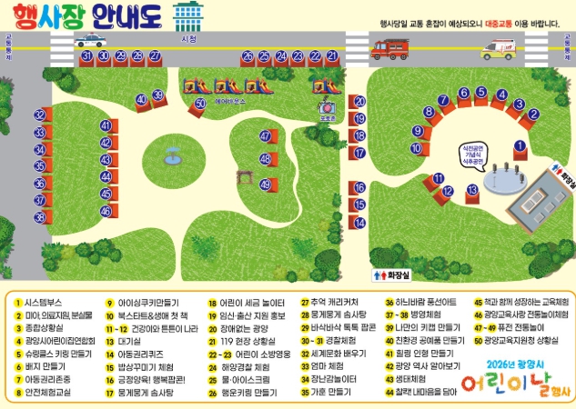 한편, 체험부스는 운영 상황과 재료 소진에 따라 조기 종료될 수 있으며, 행사 당일 시민광장 일대 혼잡이 예상됨에 따라 대중교통 이용이 권장된다.