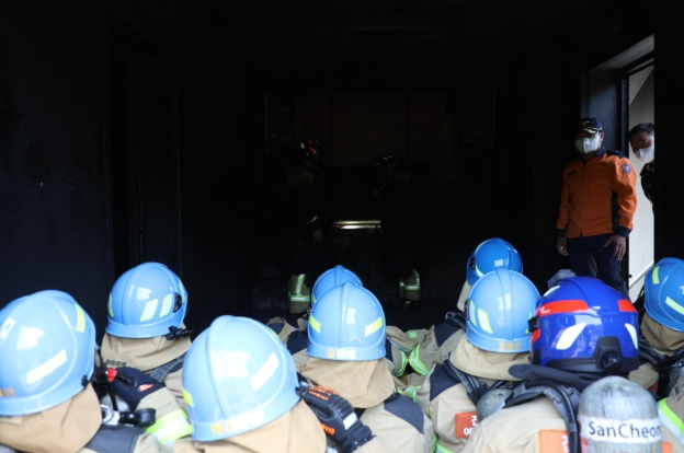 지휘부는 개인안전장비를 착용하고 실물화재 교육시설 내부에 진입해 가연성가스발화(FGI), 플래시오버(Flashover) 등 고위험 화재 이상현상을 체감하며, 고도화된 훈련 과정의 실효성과 현장 지휘 전술 운용 절차를 재점검했다.