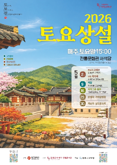 오는 5월 9일에는 국악창작 무대로, 비담의 ‘천하태평 프로젝트’ 공연이 이어질 예정이다. 공연 전에는 상설 체험 프로그램도 운영된다. 자세한 내용은 전통문화관 누리집에서 확인할 수 있다.