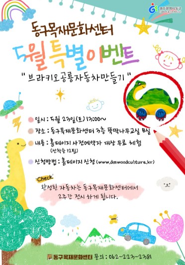 동구 관계자는 “동구목재문화센터는 아이들이 안전하게 놀고 배우는 공간이자 가족이 함께 추억을 만들 수 있는 복합문화시설”이라며 “가정의 달을 맞아 마련한 이번 프로그램에 많은 시민들의 관심과 참여를 바란다”고 말했다.