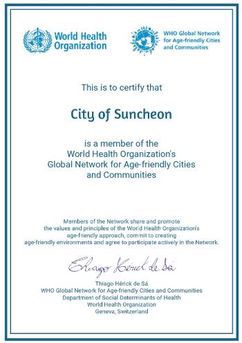 시 관계자는 “이번 재인증은 노인 인구가 급격히 증가하는 시대적 상황에 대응하기 위한 순천시의 적극적인 노력이 국제적으로 인정받은 것”이라며, “시민 모두가 연령에 상관 없이 누구나 활력 있고 건강하게 사회에 참여할 수 있는 순천형 고령친화도시 만들기에 최선을 다하겠다”고 말했다.