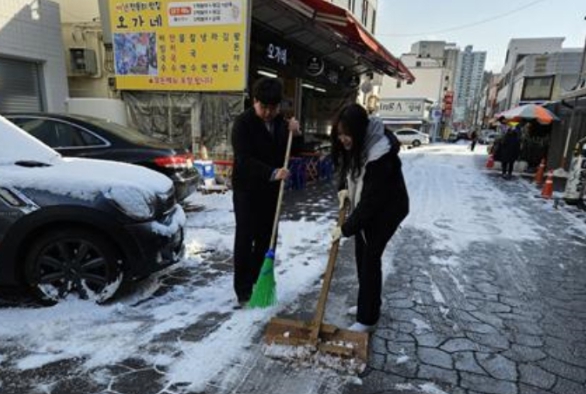 이번 제설 작업은 시민들의 안전을 최우선으로 고려하여, 중앙시장 등 주요거리와 이면도로, 취약구간 등을 집중적으로 청소하며 눈 밀어내기, 눈 쓸기 등의 작업을 진행했다.
