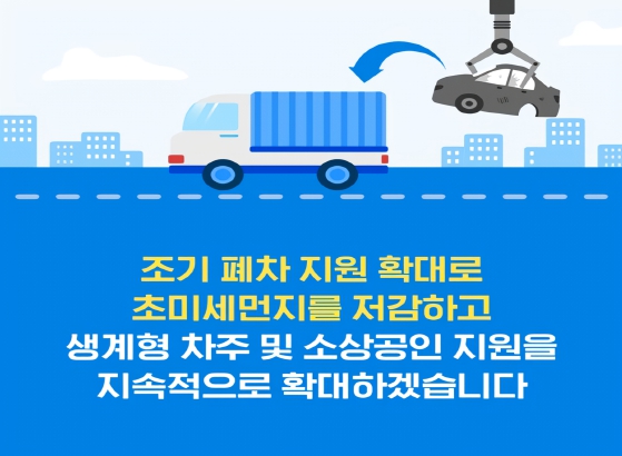 지원 규모는 총 271대(자동차 270대, 건설기계 1대)로 차종‧차량‧연식에 따라 지원 금액은 다르며, 신차를 무공해차(전기차, 수소차)로 구매하면 50만 원을 추가로 지원받을 수 있다.