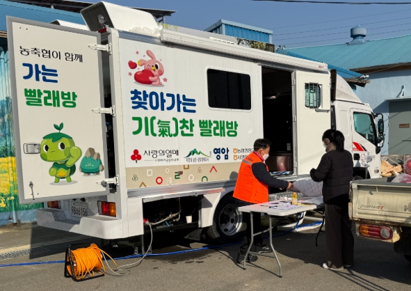 영암시니어클럽은 영암농·축협과 전남공동모금회가 1억5,000만원을 후원해 마련한 이동세탁차량을 올해 1/22일 전달받아 기찬 이동 빨래방 서비스에 들어갔다.