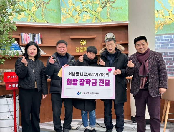 강신태 서남동장은 “지역사회를 위한 나눔 활동을 실천하는 서남동 바르게살기위원회에 진심으로 감사드린다”면서 “이 장학금이 밑거름이 되어 앞으로 밝고 건강하게 성장하는 데 조금이나마 보탬이 됐으면 한다“고 말했다.