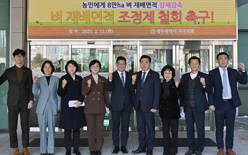 이에 서구의회는 재배면적을 강제로 감축하는 벼 재배면적 조정제의 즉각 철회 및 양곡관리법 공익직불금법 개정 요구, 쌀 생산 조정과 재고 관리에 대한 국가 책임을 강화하는 정책 재수립, 수입쌀에 대한 정부의 명확한 입장과 수입쌀을 가공용, 사료용, 해외 원조용으로 사용하여 재배면적 감축 없이 쌀값 안정 정책을 수립 해줄 것을 요구했다.