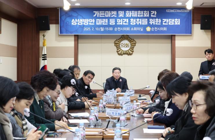 강형구 의장은 “한 차례의 만남만으로 가든마켓과 관련한 갈등을 해결할 수 없음을 잘 알고 있다”고 말하며, “순천시의회는 앞으로도 지속적으로 간담회를 개최하여, 가든마켓과 소상공인 간 상호 협력과 상생 방안 마련을 위해 최선을 다할 것”이라고 전했다.