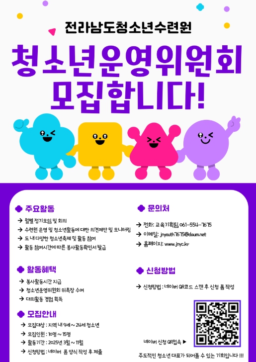 자세한 사항은 전라남도청소년수련원 교육기획팀로 문의하면 된다