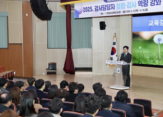 연수는 ▲ 2025년 청렴정책 및 종합감사 추진방향 ▲ 감사 사례 및 공공감사시스템 활용 안내 ▲ 공무원 연금 제도 및 공공재정 환수제도의 이해 ▲ 감사문제 착안 및 조사법 ▲ 22개 교육지원청 감사 정보 공유 등으로 이뤄져 감사담당 공무원으로서의 자질과 역량을 함양하는 시간이 됐다.