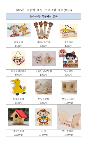 이번 프로그램은 3월부터 12월까지 매주 화요일부터 일요일까지 운영되며, 유아부터 성인까지 연령별 맞춤형 체험 기회를 제공하여 목공예 관심을 높이고, 생활 속에서 직접 활용할 수 있는 다양한 소품 만들기와 DIY 가구 만들기 프로그램을 진행한다.