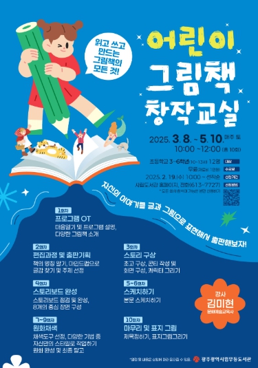 초등학교 3~6학년을 대상으로, 글쓰기‧그리기 등 그림책 출판의 모든 과정을 경험할 수 있다. 특히 출간된 그림책은 시민들과 함께 공유할 수 있도록 전시회를 열 예정이다.