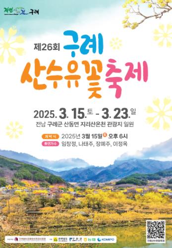 김순호 군수는 “구례를 찾는 방문객들이 봄의 전령사 산수유꽃을 만나 영원한 사랑의 기운을 듬뿍 받아 가시길 바란다”고 전했다.