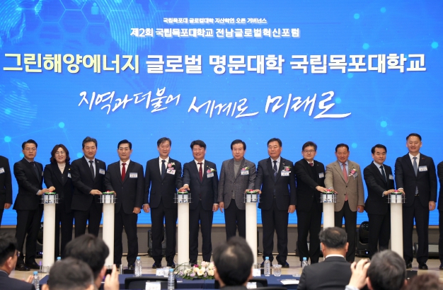 김산 무안군수는 포럼에 참석하여 ‘목포대 글로컬대학 30’ 사업 선정에 대한 축하를 전하고 무안군과 목포대의 협력 계획을 설명하며 지역발전을 위한 대학과의 상생 방안을 모색했다.