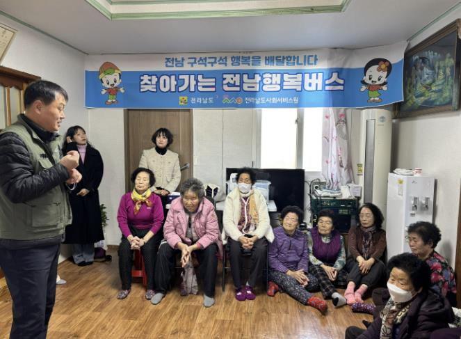 ‘찾아가는 전남행복버스’는 전라남도(사회서비스원)와 함평군이 협업해 도심과 떨어져 사회서비스가 열악한 농촌 주민에게 맞춤형 의료·보건·복지서비스를 지원하는 사업이다.