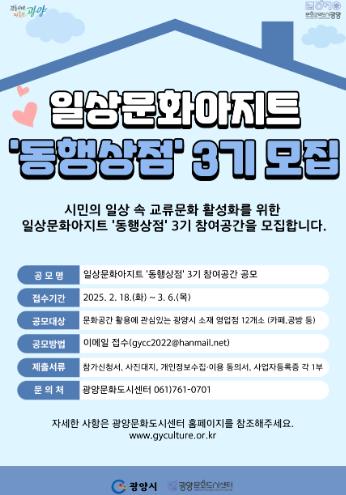 3기 동행상점으로 선정된 영업점에는 ‘동행상점’ 명패가 제공되며, 자체 문화 프로그램을 기획·운영할 수 있도록 최대 80만 원의 운영비가 지원된다.
