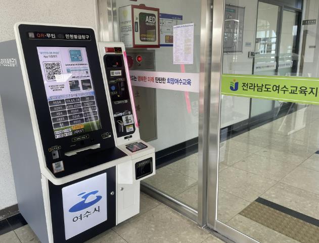 이에 따라 시는 지난 11일 여수교육지원청에 무인민원발급기를 신규 설치하고 오전 9시부터 오후 6시까지 운영하고 있다.