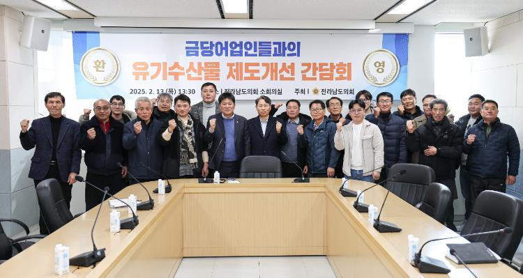 전라남도의회 신의준 의원(완도2, 더불어민주당)은 직불제 개편으로 어려움을 호소하는 어업인들의 의견을 듣기 위해 지난 2월 13일 전라남도의회 소회의실에서 ‘유기수산물 제도 개선 간담회’를 개최했다.