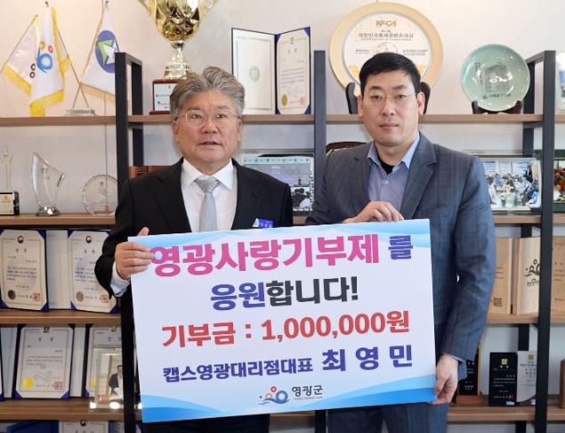 영광군 관계자는 “영광군의 발전을 위한 고향사랑기부에 동참해주신 최영민 대표님께 진심으로 감사드리며, 군민과 기부자 모두가 공감할 수 있는 사업을 적극적으로 발굴하여 적극 추진하겠다”라고 말했다.