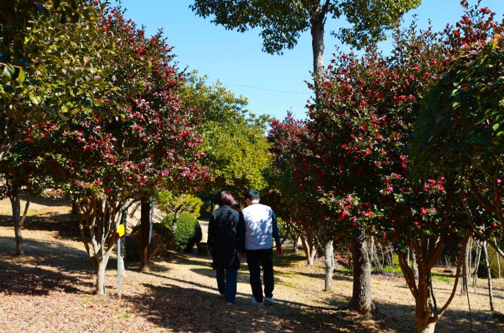 초암정원은 사계절 내내 다양한 꽃과 나무가 어우러진 명소로, 겨울이면 붉게 만개한 애기동백이 정원의 고즈넉한 분위기와 어우러져 한 폭의 그림 같은 풍경을 연출한다.