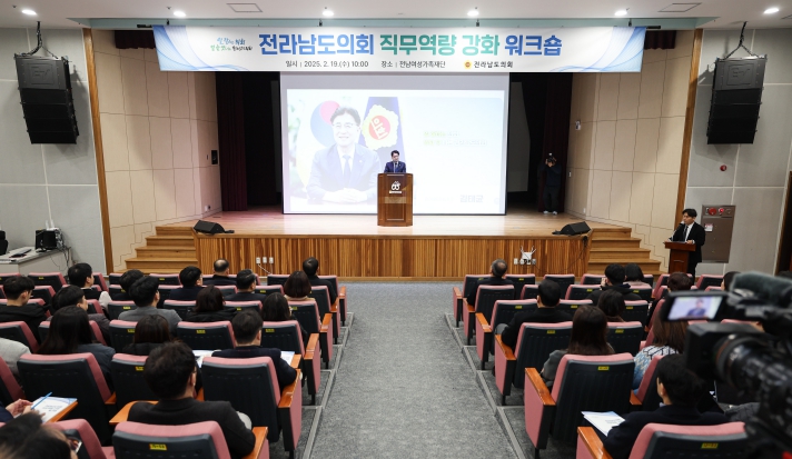 이번 워크숍에는 전라남도의회사무처 및 시·군 의회 직원 150여 명이 참석했으며, 자치법규 입안·심사, 국내·외 경제 동향 및 정치 전망을 주제로 진행됐다.