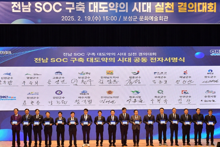 시에 따르면 이번 결의대회는 ‘전남 SOC 구축 대도약의 시대를 열자!’라는 슬로건 아래 김영록 전남도지사, 김태균 전남도의회 의장, 정기명 여수시장을 비롯한 16개 시군 시장·군수, 지역 주민 등 200여 명이 참석한 가운데 진행됐다.