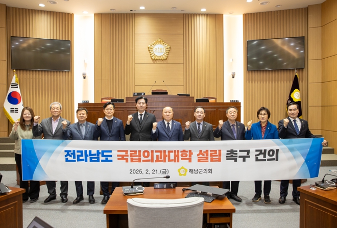 해남군의회는 전남 도민의 기본적 보건의료권 보장과 지역 간 의료 불균형 해소를 위해, 2023년 국무총리 담화를 통해 약속한 전라남도 국립의과대학 설립 절차를 조속히 추진할 것을 정부에 다시 한번 강력히 촉구했다.