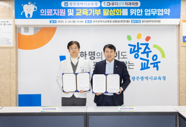 시교육청과 유디상무치과의원은 24일 본청 상황실에서 ‘치과치료 지원을 위한 업무협약’을 체결했다.