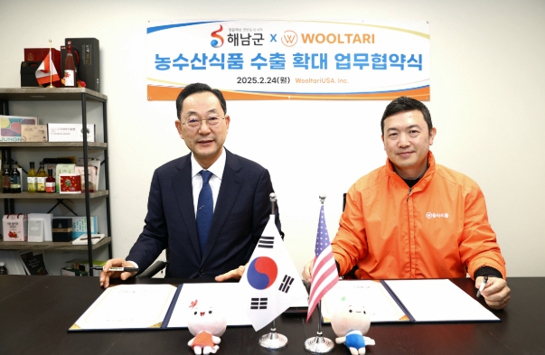 방미중인 명현관 군수와 김민혁 울타리 대표를 비롯해 관계자들이 참석한 가운데 열린 협약식을 통해 해남산 농수산식품 수출 확대와 상생 협력모델 발굴을 위해 상호 협력해 나가기로 했다.