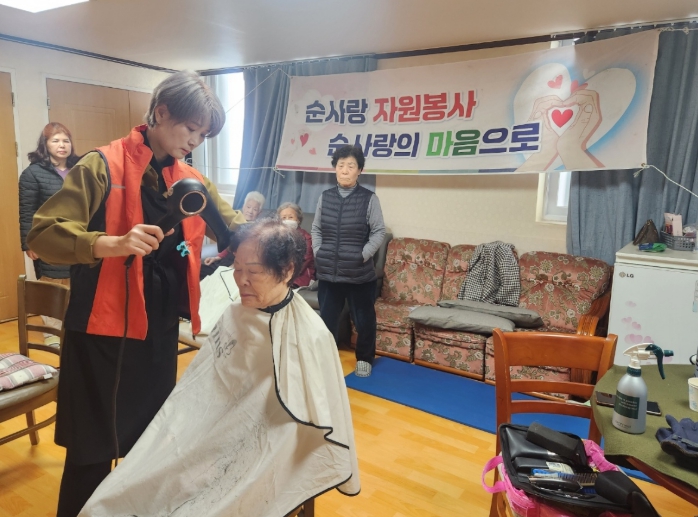이번 봉사는 경제적·신체적 어려움으로 미용실 방문이 어려운 어르신들을 위해 마련됐으며, 순사랑봉사단의 자원봉사자들이 직접 어르신들을 찾아가 머리를 다듬어 드리고 말벗이 되어 드리며 따뜻한 나눔을 실천했다.