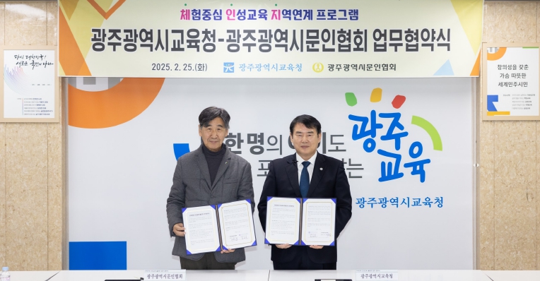 시교육청과 광주광역시문인협회는 25일 본청 상황실에서 ‘인성교육활성화를 위한 업무협약’을 체결했다.