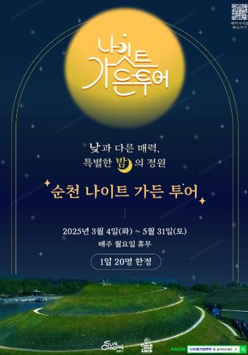 시 관계자는 “순천의 역사와 문화가 숨 쉬는 원도심의 색다른 매력을 느끼고 살랑이는 봄바람과 정원의 별빛이 어우러진 순천의 밤을 즐기고 싶다면 ‘나이트 가든투어’를 선택하시길 바란다”고 전했다.