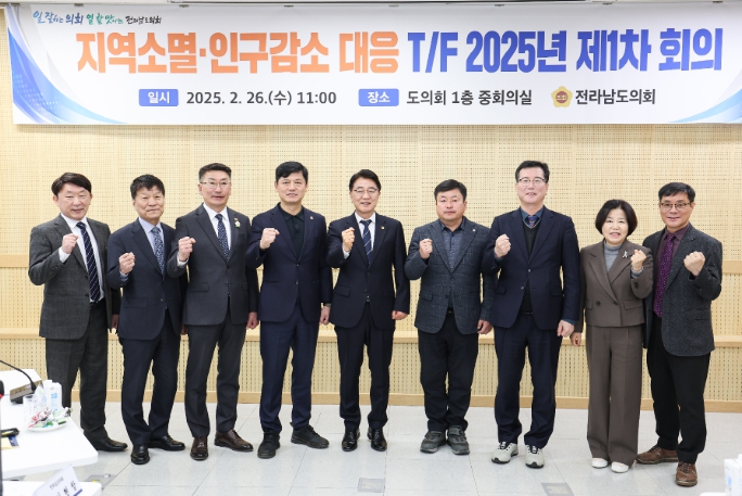 지역소멸 T/F는 전라남도의회 김태균 의장의 공약으로 지역소멸 위기 문제를 해결하기 위하여 도의회 의원 5명과 전남도・전남도교육청 관련 실국장 5명으로 구성되어 지난해 10월 출범했다.