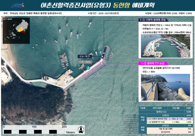 이번 공모사업 선정으로 동헌항 어촌신활력증진사업은 어항시설 정비를 통해 안전성을 높이고 지역민의 삶의 질 향상에 크게 이바지할 것이다.