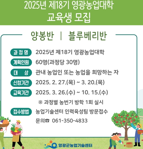 기타 자세한 사항은 영광군 고시공고와 농업기술센터 인력육성팀으로 문의하면 된다.