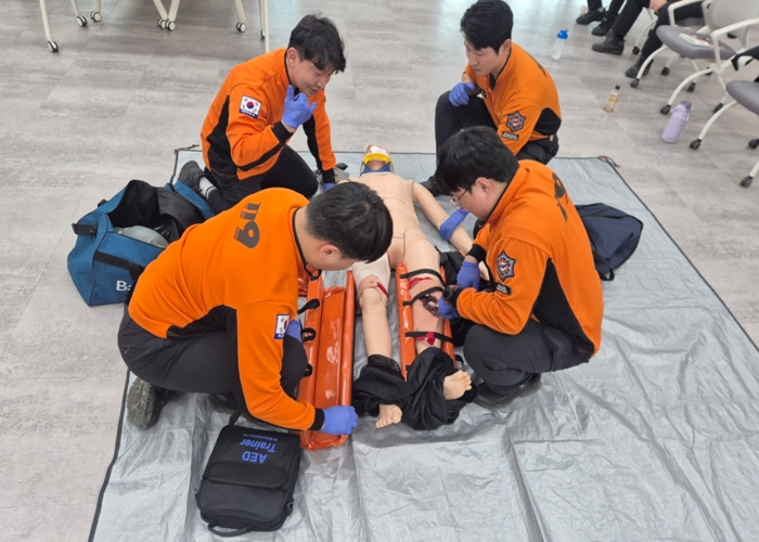 이번 교육은 조별 분할실습 교육훈련 방식으로 ▲펌뷸런스 장비관리 ▲현장초기 대응 이론 및 실습 ▲외상환자대응 시나리오 훈련 등이 포함됐다.