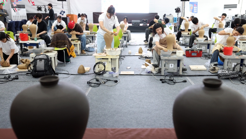 지난 1일 전국 물레성형경진대회가 열린 가운데 참가한 도예가들이 도자기 성형에 온 정성을 기울이고 있다.