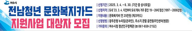 해당 사업은 지역 청년에게 연 25만 원의 문화복지비를 지원하는 사업으로, 공연 관람, 학원 수강, 여행, 체육시설 이용 등 도내에 지정된 가맹점에서 사용할 수 있다.